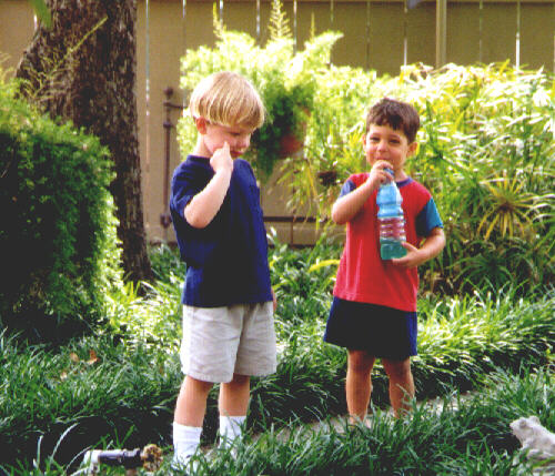 They were playing in Grandpa John's backyard. This is one of the few times they slowed down enough to take a picture of.