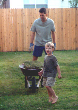 We laid sod in our back yard in mid April, and we had a couple of little "helpers".
