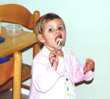 She's so helpful, helping to clean up the cake-making mess! (It's a dirty job, but somebody's got to do it!)