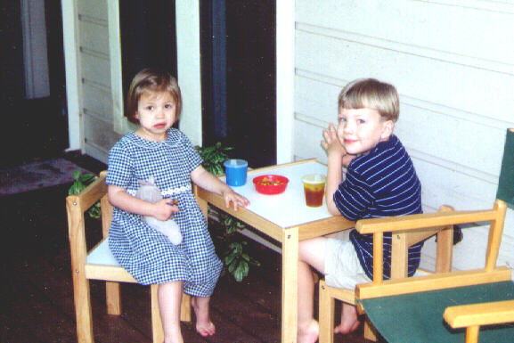 Enjoying a traditional snack of Goldfish and Juicy-Juice.