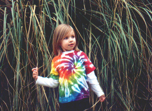 Mary posing in front of a big grassy bush (or is that big bushy grass?) at Aunt Sarah & Uncle Piet's house.