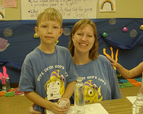 Jonathan and Laurie at our church's vacation bible school. Laurie was the supply coordinator for the week-long program.