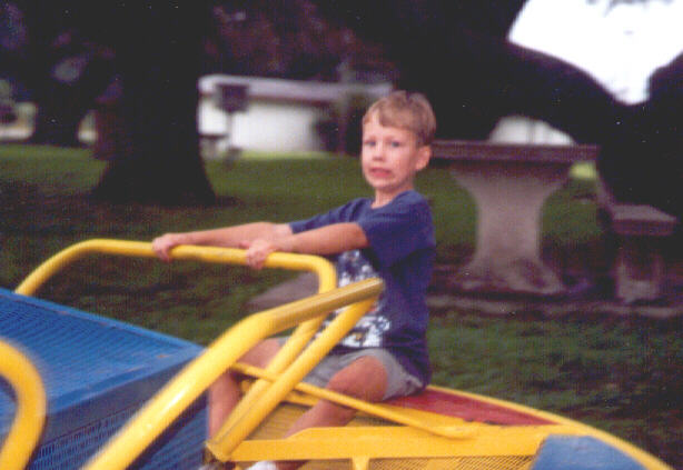 Jonathan playing on a whirl-a-round at the Staff family (Laurie's dad's side) reunion.