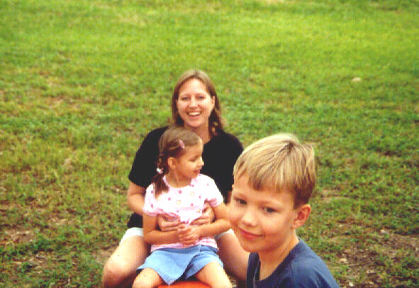Mom, Mary and Jonathan on the bottom end of the see-saw. At the Staff Family reunion.