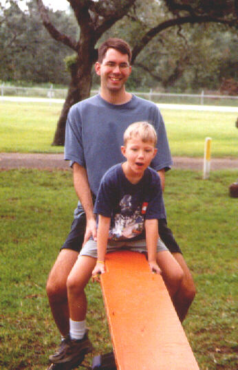 Dad and Jonathan on the top end of the see-saw. At the Staff Family reunion.
