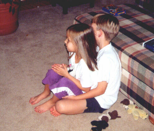 Mary and Jonathan relaxing together, watching a movie. In truth, they don't snuggle like this that often, but this time I was quick enough with the camera to capture the moment.