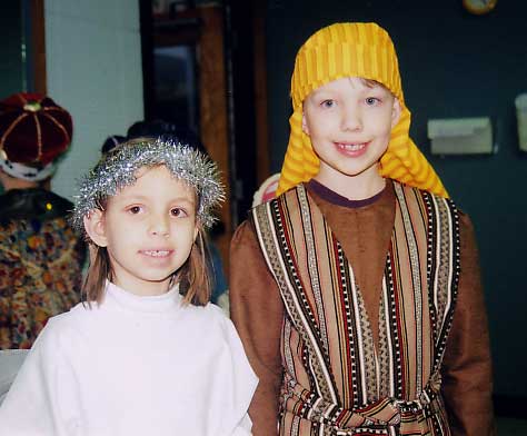 Mary was an angel in the angel chorus, and Jonathan was Joseph in our church's Advent musical program. (12/04)