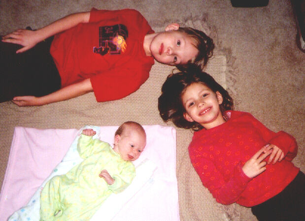 Mary and Jonathan help Mom babysit their newest cousin, Noelle. (2/04)