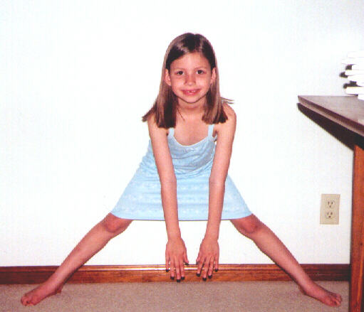 Mary striking a silly pose, but one which accentuates how long her arms and legs are! (5/04)