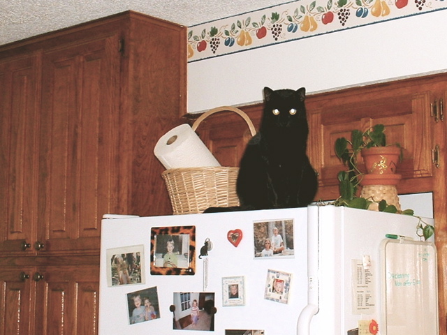 She's not supposed to be up there - and even though she's nothing but a black shape with eyes, we still see her. (1/13/06)
