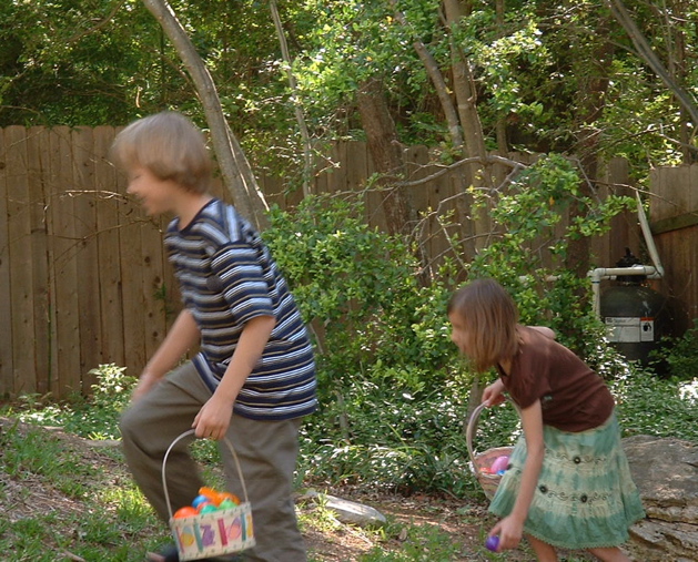 The race is on - searching for eggs to fill Easter baskets with. (4/16/06)