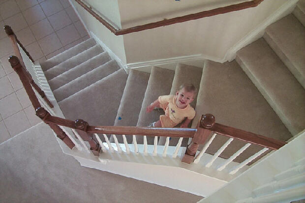 She's fascinated by the stairs - as soon as she reaches the top she turns around and comes back down, only to turn around and do it all over again. Maybe she'll start losing her babyfat?