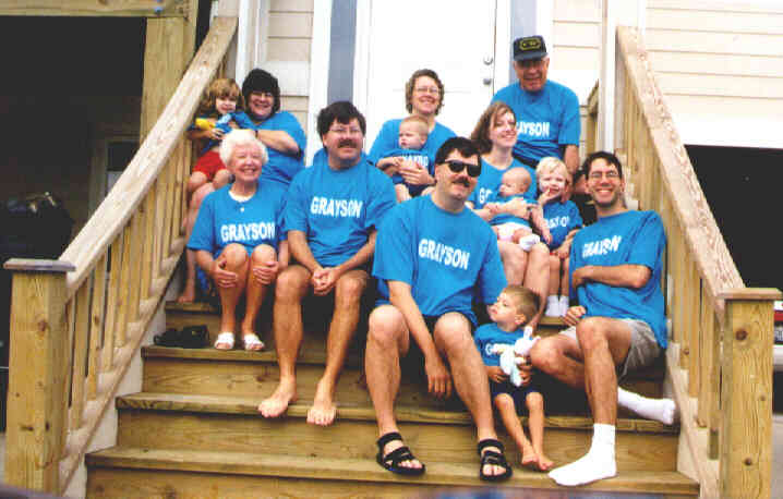 Here's all of us showing off the Grayson t-shirts Barbara got for us. Yes, Katie is there, but completely hidden by Andy's head.