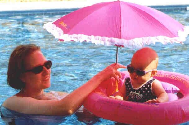 Here's Mary in the float Aunt Patti got her. It fit her perfectly! And she's on the way to being cool like Mommy with those shades.
