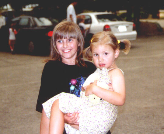 The oldest cousin (Katie, age 9) carries the youngest (Mary, age 3).