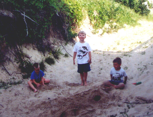We had a big sandy area right beside the house, which the kids loved playing in. Here are Chris, Jonathan and Matt showing off a tunnel that they constructed (unfortunately it's not too clear in this shot).