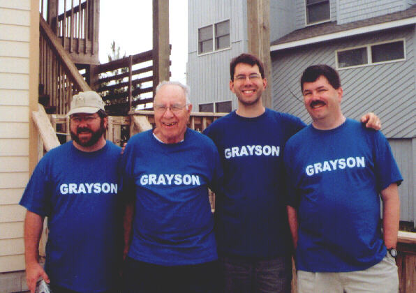 Dad and all three of us, hamming it up. Andy, Dad, Chris and Mike (06/04)